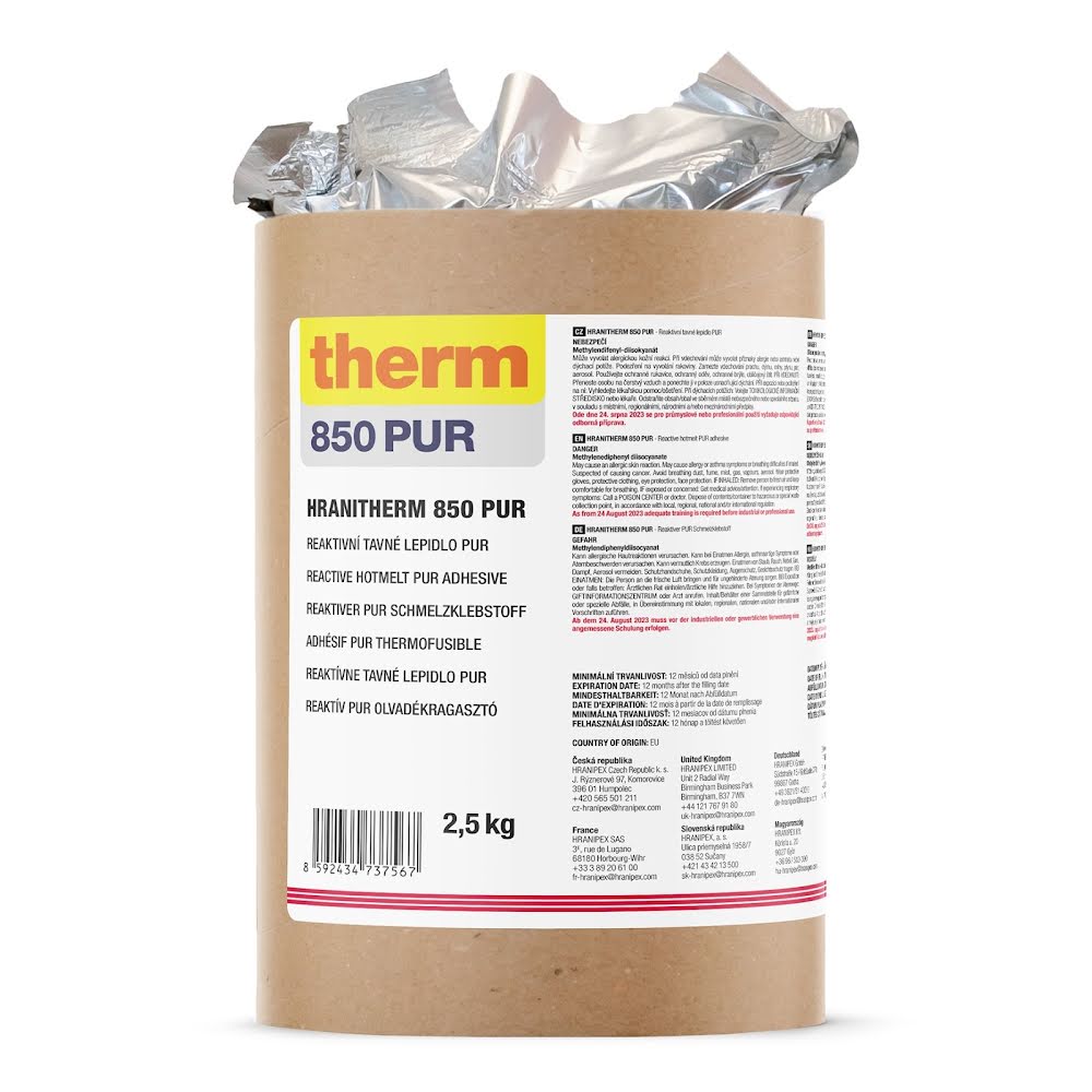 Plněné tavné lepidlo Hranitherm 850 PUR je vhodné pro lepení hran na profesionálních olepovacích strojích se speciální PUR technologií. Tímto způsobem olepování vytvoříte spoj s vysokou odolností vůči vodě a teplu. Dobré výsledky aplikace se štěrbinovou tryskou a válečkovým nanášením.